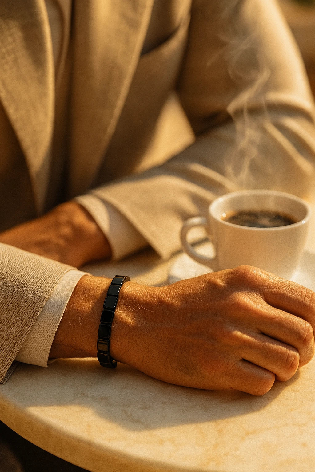 Les généraux romains et les guerriers antiques portaient l’hématite pour sa capacité à renforcer le courage, la vitalité et la puissance intérieure. Aujourd’hui, Onyxa redonne vie à ce rituel oublié, dans une forme moderne, élégante et discrète.