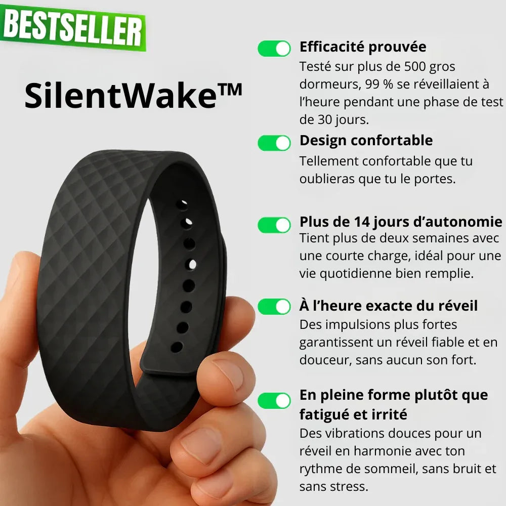 Le SILENTWAKE™ est un bracelet innovant qui te réveille au bon moment grâce à des vibrations douces et intelligemment calibrées.